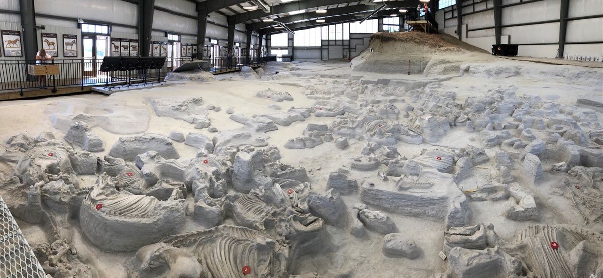 The Hubbard Rhino Barn is a highlight of most visits to the park. Here our researchers and student interns carefully excavate the fossils preserved in the ash of this ancient watering hole. The fossils are left in-situ (in place) for viewing. Staff are happy to visit with guests as they work in the bone bed to answer questions about fossils already excavated, as well as explaining the work currently ongoing.